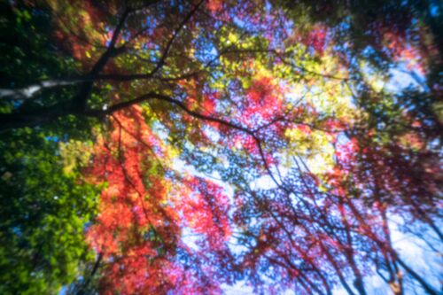 2022/11/27 Thingyfy Pinhole Pro S / ISO 1000 / SONY α6400 / 1/4sec 青く澄み渡る晩秋の空を見上げると、木漏れ日に輝く色とりどりのイロハモミジ。今年は撮影に向かう時間が遅くなったものの、よい撮影場所が見つかった。たまには『いつものパターン』を…